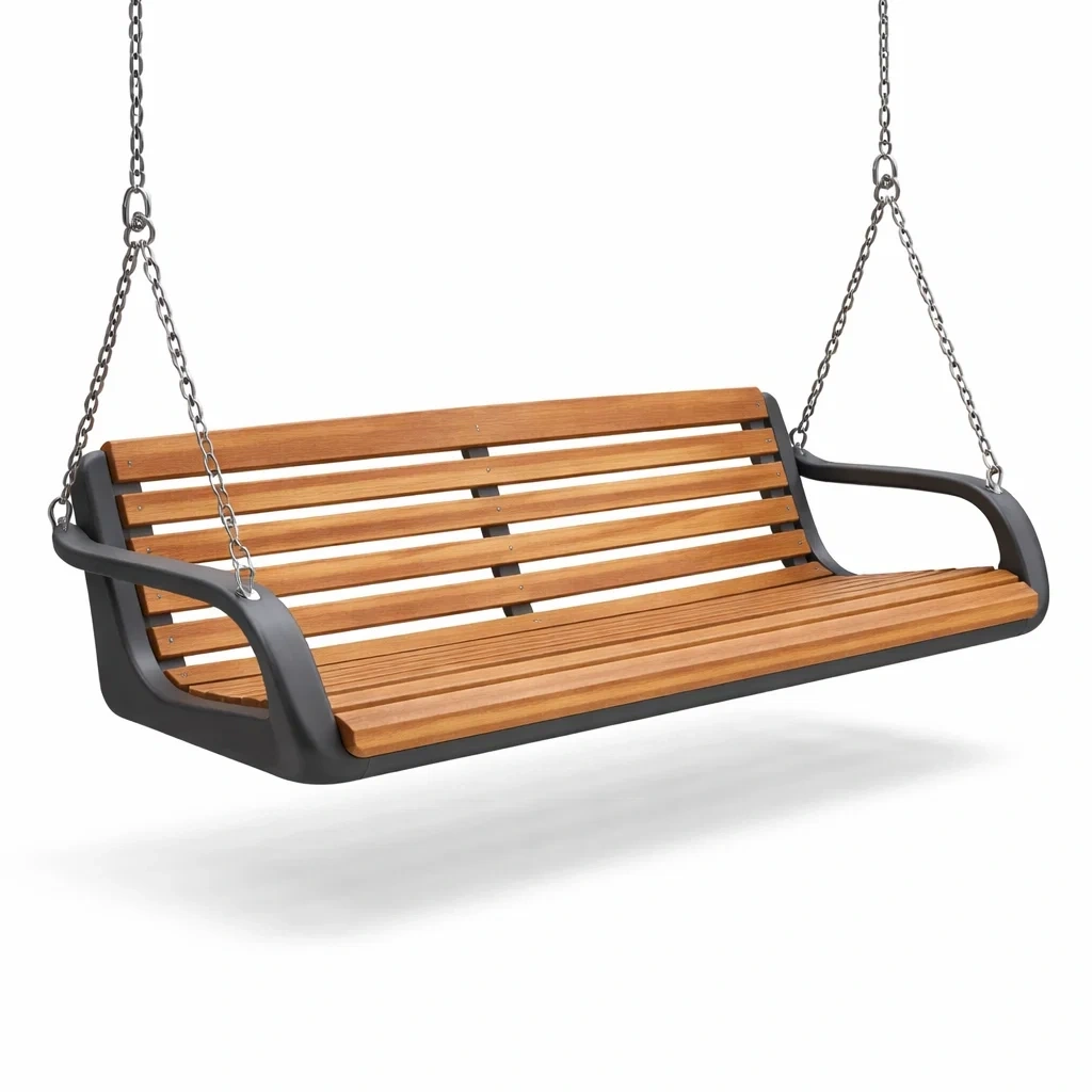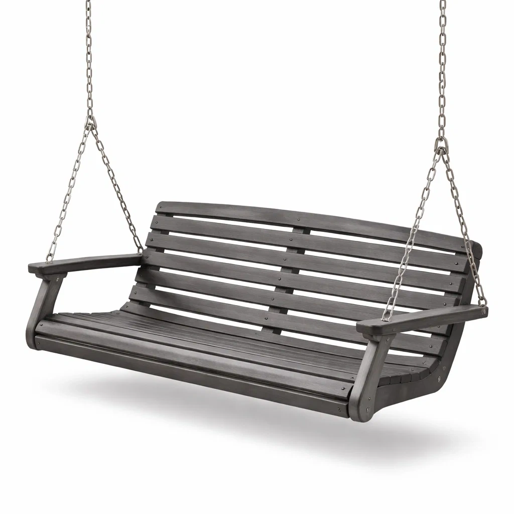 Altalena da veranda panchina sospesa in legno con catene in acciaio di colore grigio