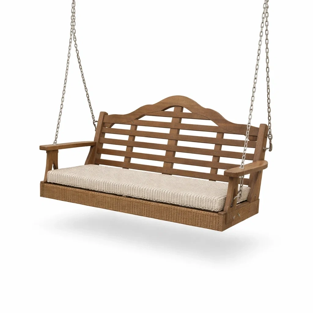 Altalena da veranda panchina a dondolo in legno con cuscino in poliestere di colore beige