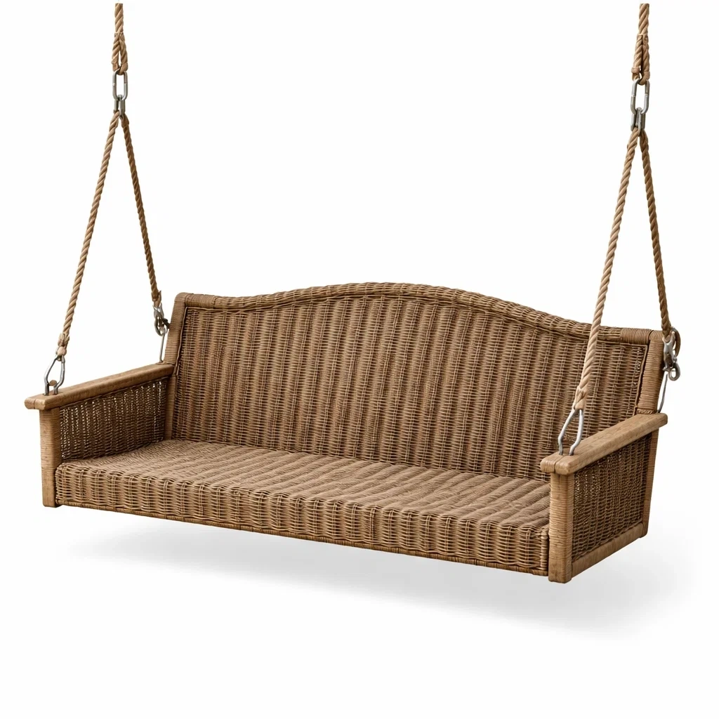 Altalena da veranda poltrona sospesa in vimini di colore marrone con corde robuste