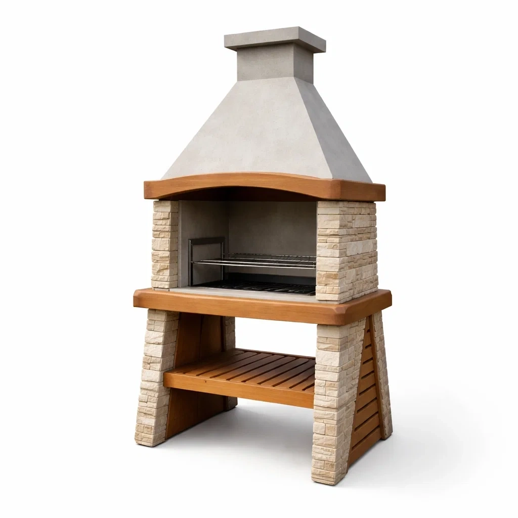 Barbecue in cemento refrattario con griglia in acciaio